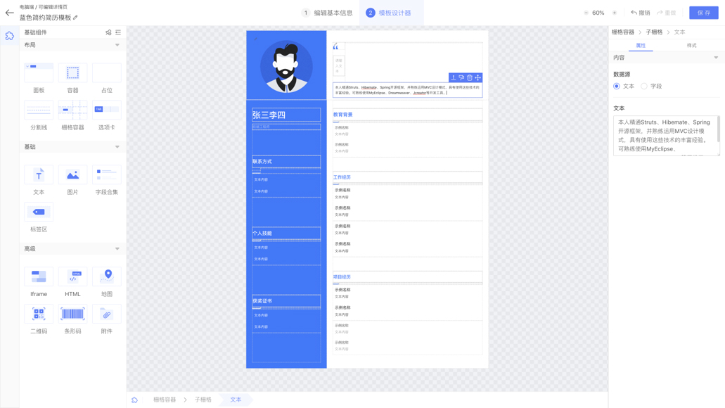 针对简历页面基于设计师平台可以快速设计出多种页面样式,,,满足不同客户的多样化业务需求